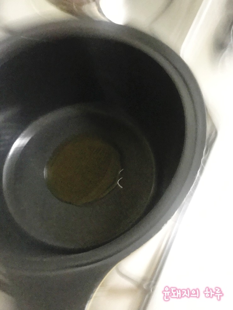 그다음 냄비에 들기름을 두스푼 넣어주고