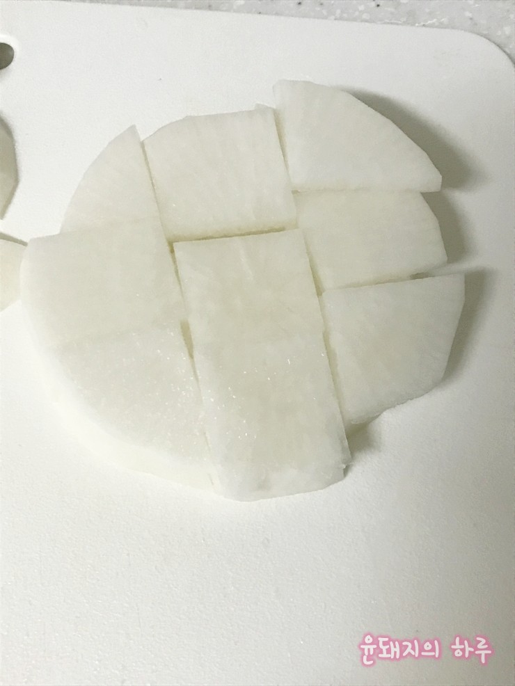 아까 썰어둔 무를 넣어주세요