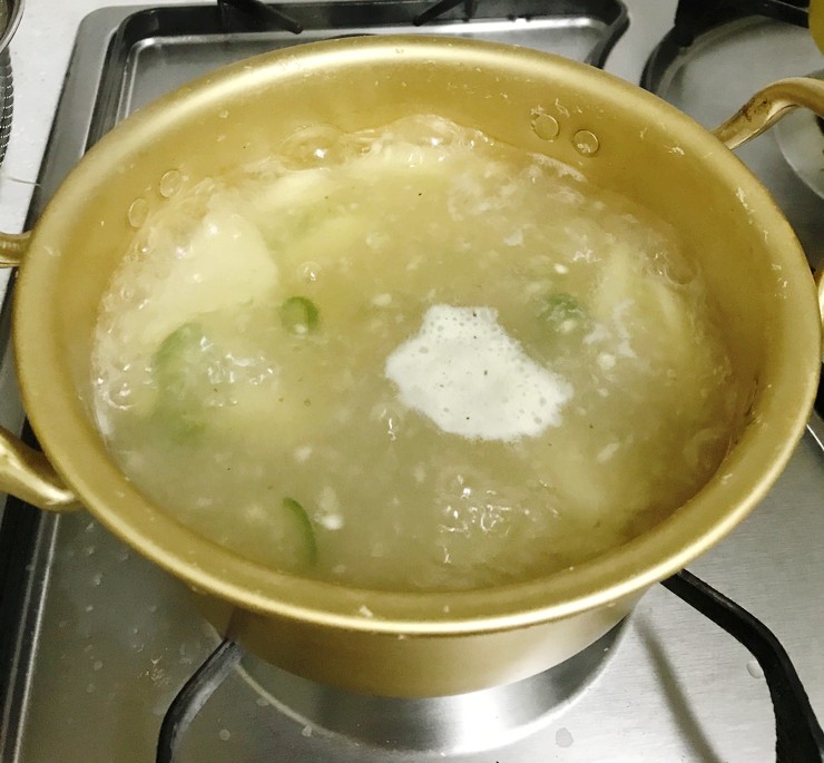 팔팔팔 끓이다가 감자가 익었다 싶을때 파를 넣어주세요~