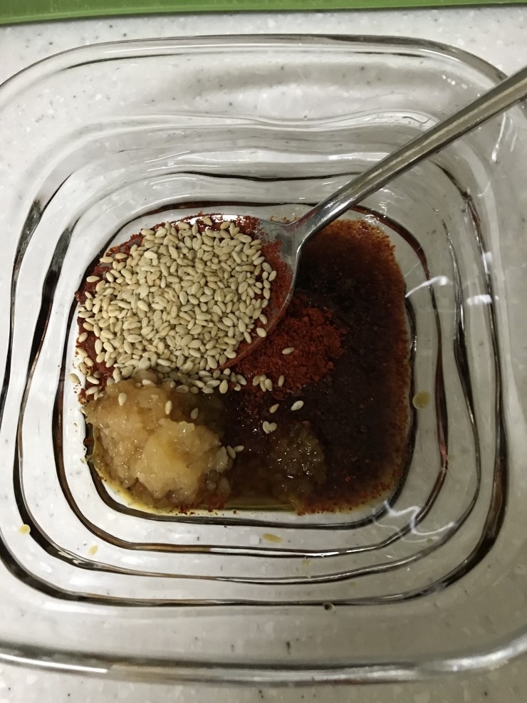 자, 준비를 다 마쳤으면 밥이랑 비벼먹을 양념장을 준비합니다.